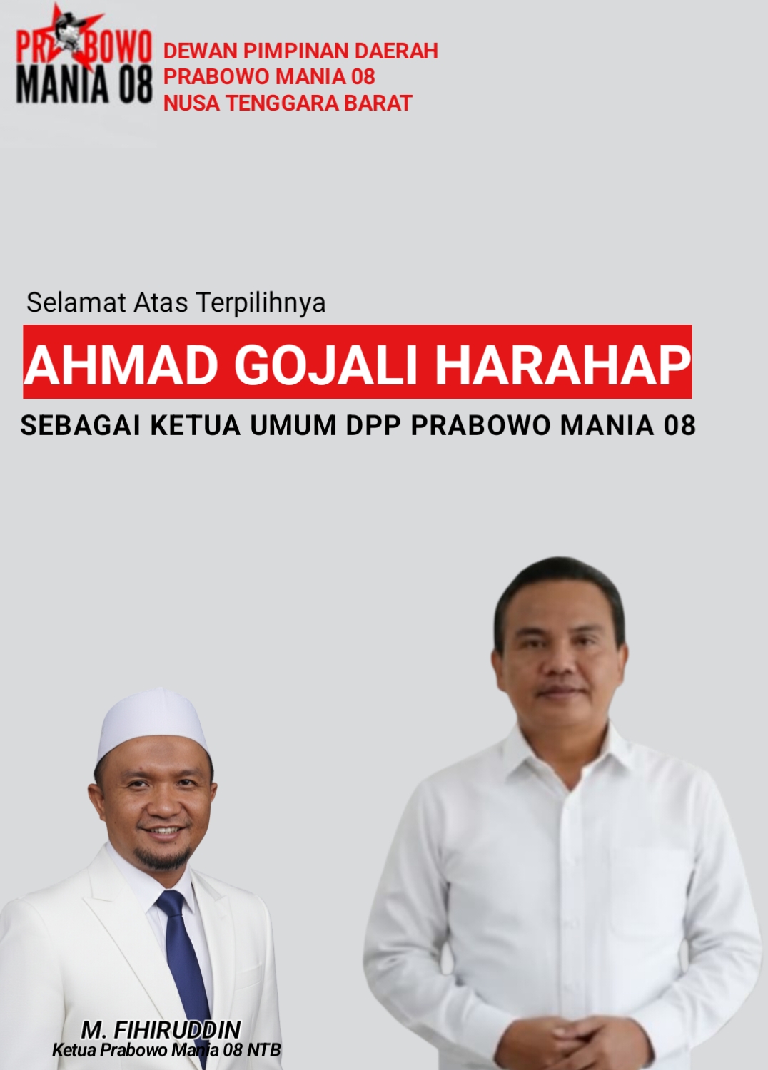 JAKARTA – Akhmad Gojali Harahap ditetapkan sebagai Ketua Umum DPP Prabowo Mania 08, Selasa 1 September 2025 pada rapat pleno DPP Prabowo Mania 08 di Jakarta.