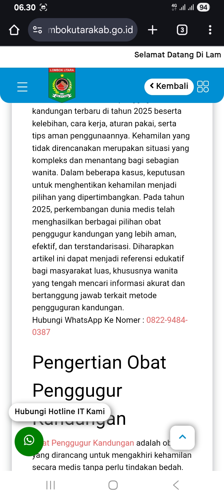 Yang lebih mencurigakan, artikel tersebut mencantumkan nomor WhatsApp aktif dengan tautan langsung ke aplikasi, sehingga memudahkan transaksi obat aborsi ilegal.