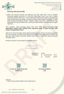 “Keabsahan surat edaran diatur dalam Peraturan Perkumpulan Nomor 16 Tahun 2025, harus ditandatangani Rais Aam, Katib Aam, Ketua Umum, dan Sekretaris Jenderal,” demikian penjelasan PBNU.